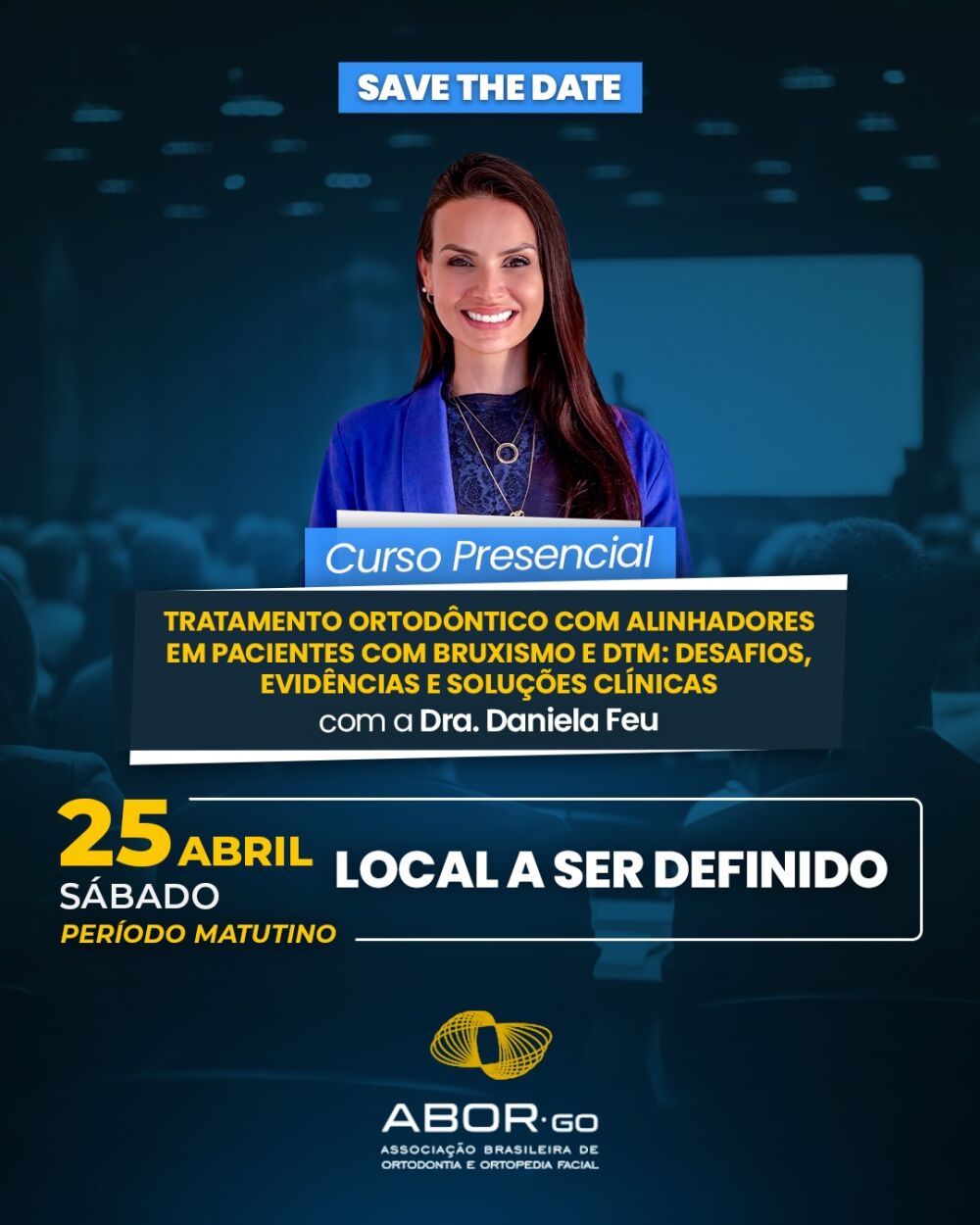 Você está realmente preparado para tratar casos com alinhadores em pacientes com bruxismo e DTM? No dia 25 de abril, nós da ABOR-GO convidamos você a sair do básico e mergulhar em um conteúdo que vai desafiar sua prática clínica e ampliar sua tomada de decisão. Receberemos a Dra. Daniela Feu para um curso imperdível que une ciência, prática clínica e inovação com o tema "Tratamento Ortodôntico com Alinhadores em Pacientes com Bruxismo e DTM: Desafios, Evidências e Soluções Clínicas".